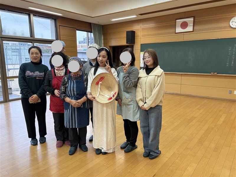 本年度はベトナム出身の日本語学科留学生3名が講師役を務め、ベトナムの家庭料理作りおよび文化・伝統衣装の紹介を行いました。